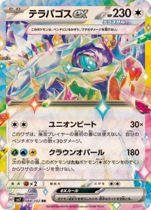 特にテラパゴスは、アニメやゲームのDLCで登場しているため知名度が高いです。そのため、今後テラパゴスexの人気が高まり、価格が高騰するかもしれません。