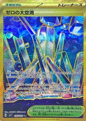 クリスタルのような甲羅が描かれた幻想的なイラストが特徴です。さらに、スタジアム「ゼロの大空洞」と組み合わせることで最大240ダメージを出せる強力なワザ「ユニオンビート」を持ち、デッキの核としてプレイヤー需要が底堅い点も強みです。